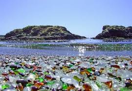 Dos escombreras, una en España (Asturias) y otra en Norteamérica (California), recibieron del mar el regalo de sendas playas de cristales de colores.