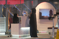 Al pasear por las salas del aeropuerto, hicimos un curioso descubrimiento. Una pequeña bolsa de seda verde, con una brújula, contenía una pequeña alfombrilla en su interior. La brújula para que el musulmán rezara mirando hacia la Meca y la alfombrilla, para aislarse del suelo.